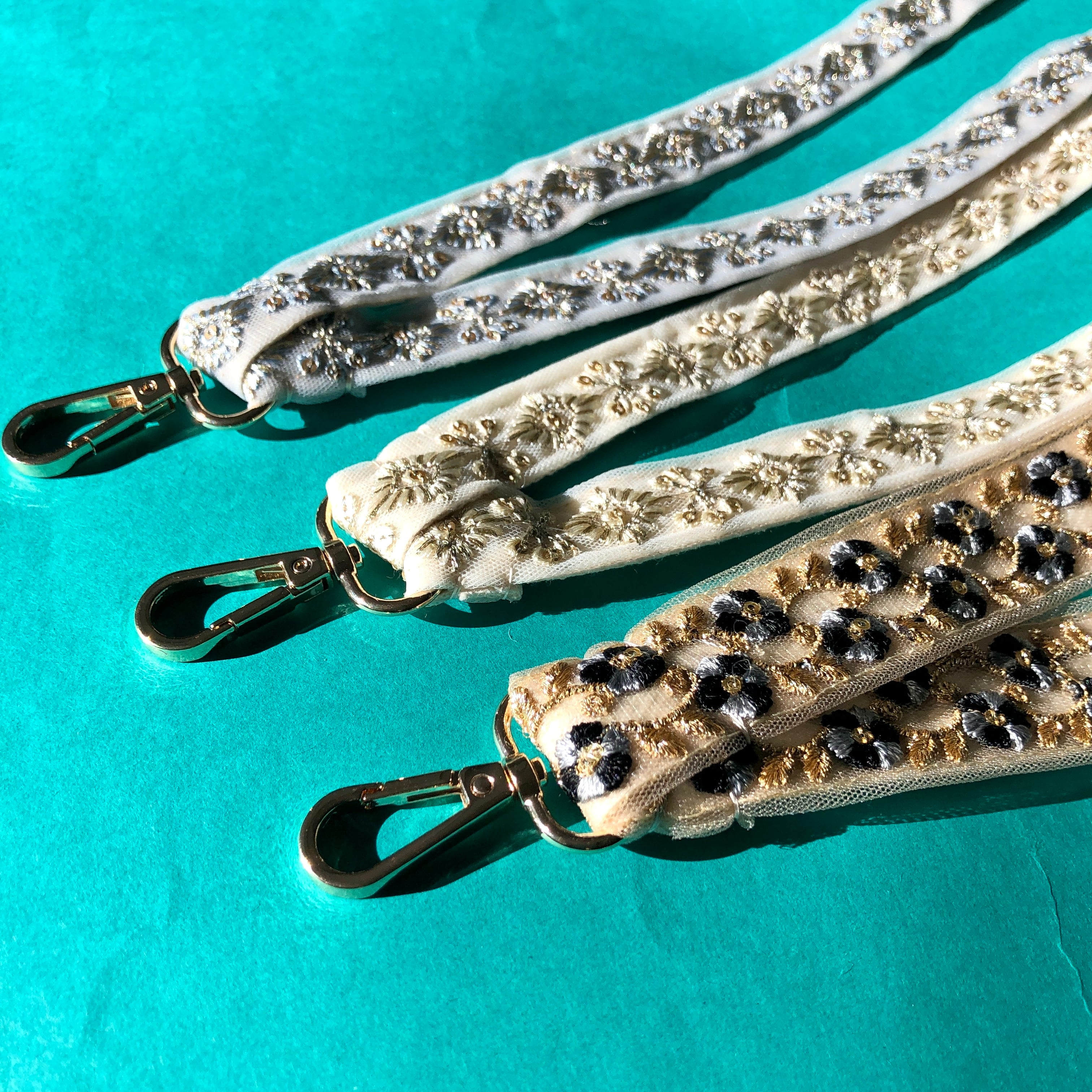 [約100cm]ネックストラップ インド刺繍リボン オフィスでも使いやすい細タイプ グレー