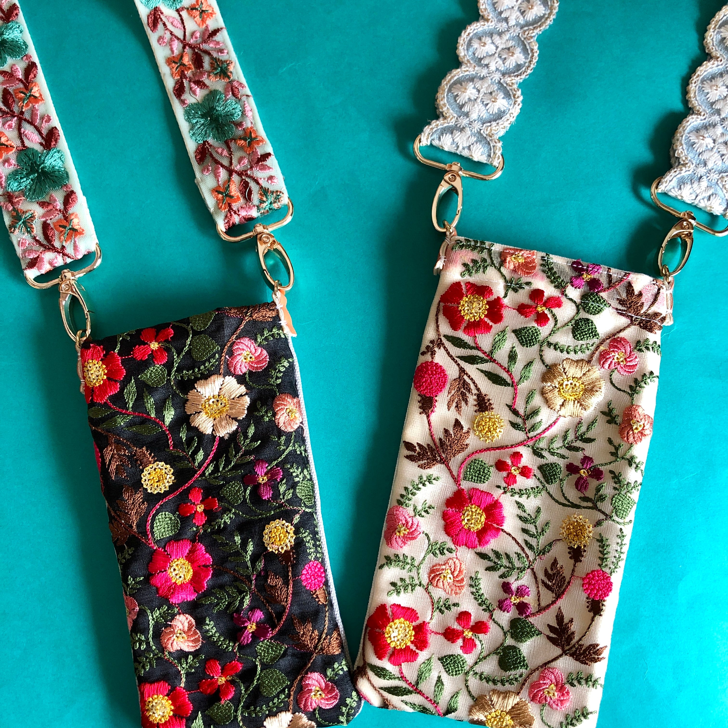 20×10cmスマホポーチ/サコッシュ ツイスト紐付き ショルダーストラップとセットアップできます。インド刺繍リボン