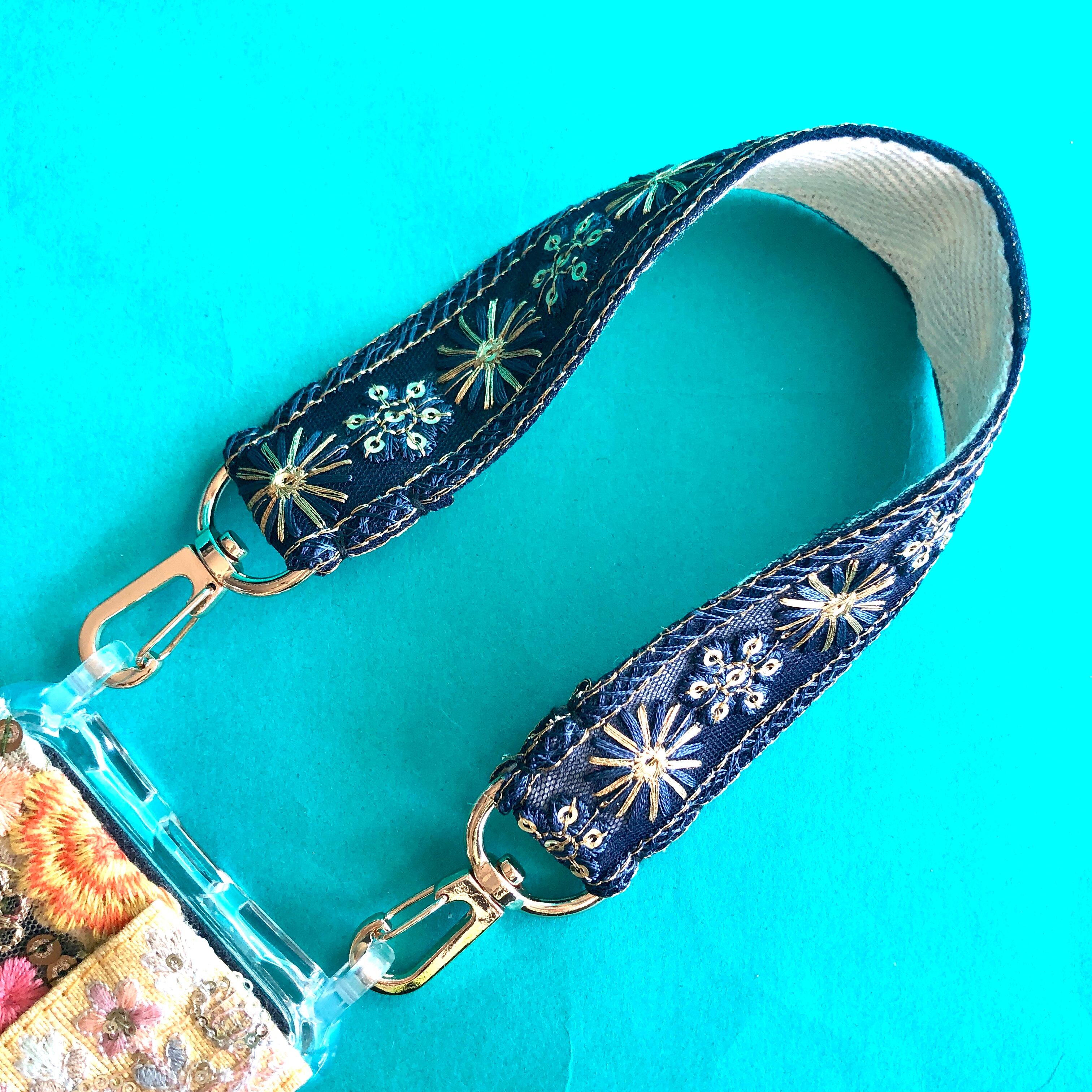 受注生産 ショートスマホストラップ 組み合わせ自由選んで楽しいストラップ サコッシュとセットアップし手提げにできます。単品可。インド刺繍リボン