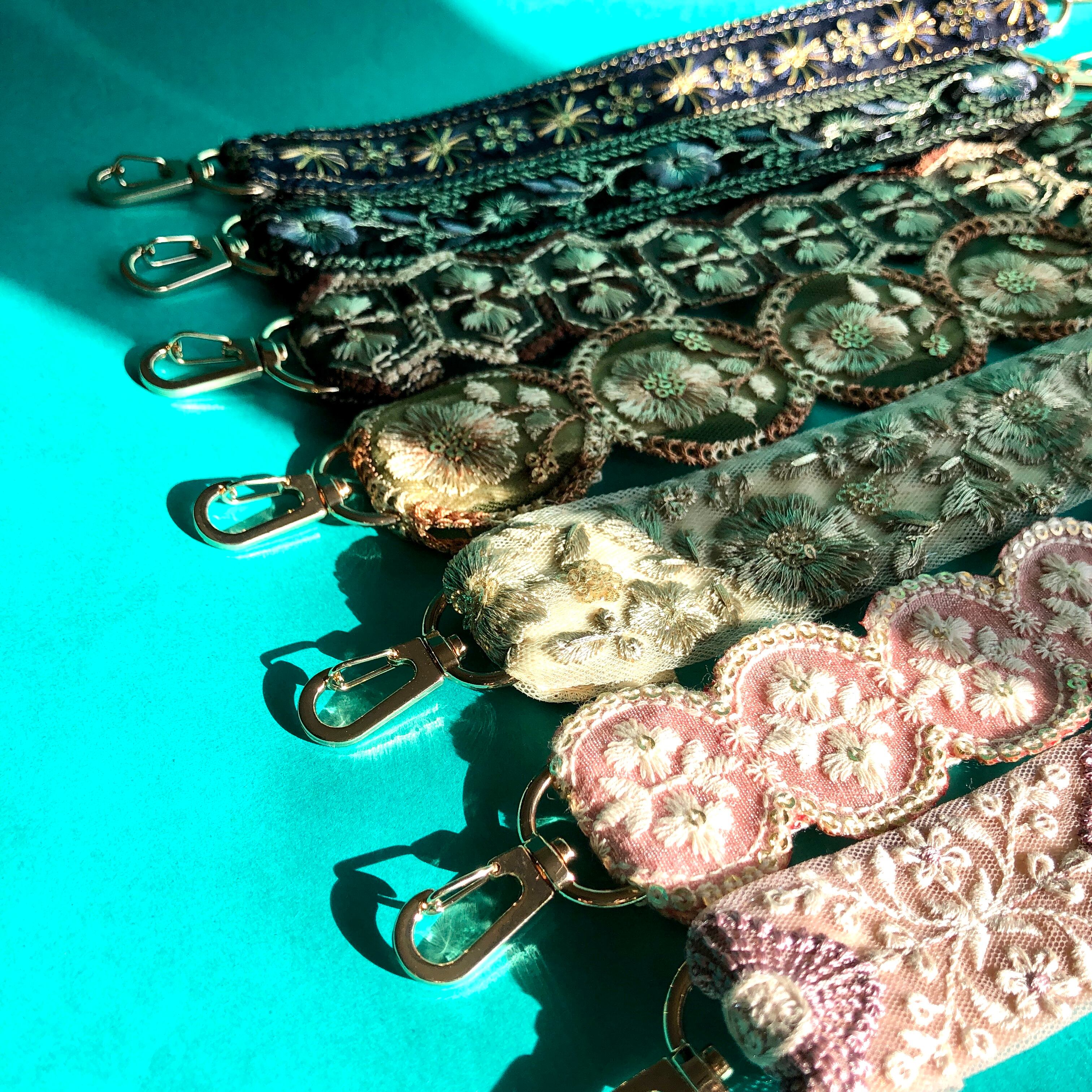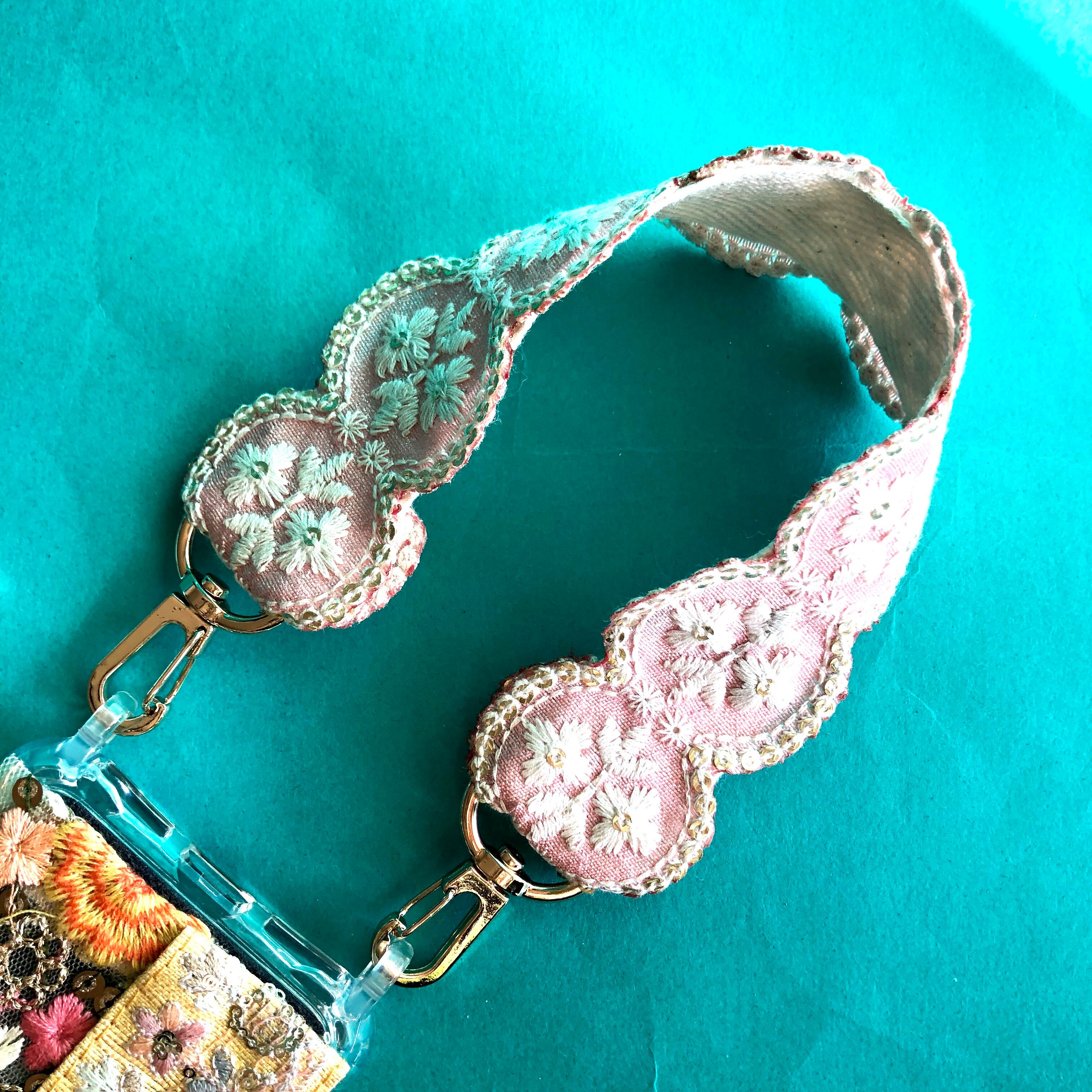ショートスマホストラップ 組み合わせ自由選んで楽しいストラップ サコッシュとセットアップし手提げにできます。単品可。インド刺繍リボン
