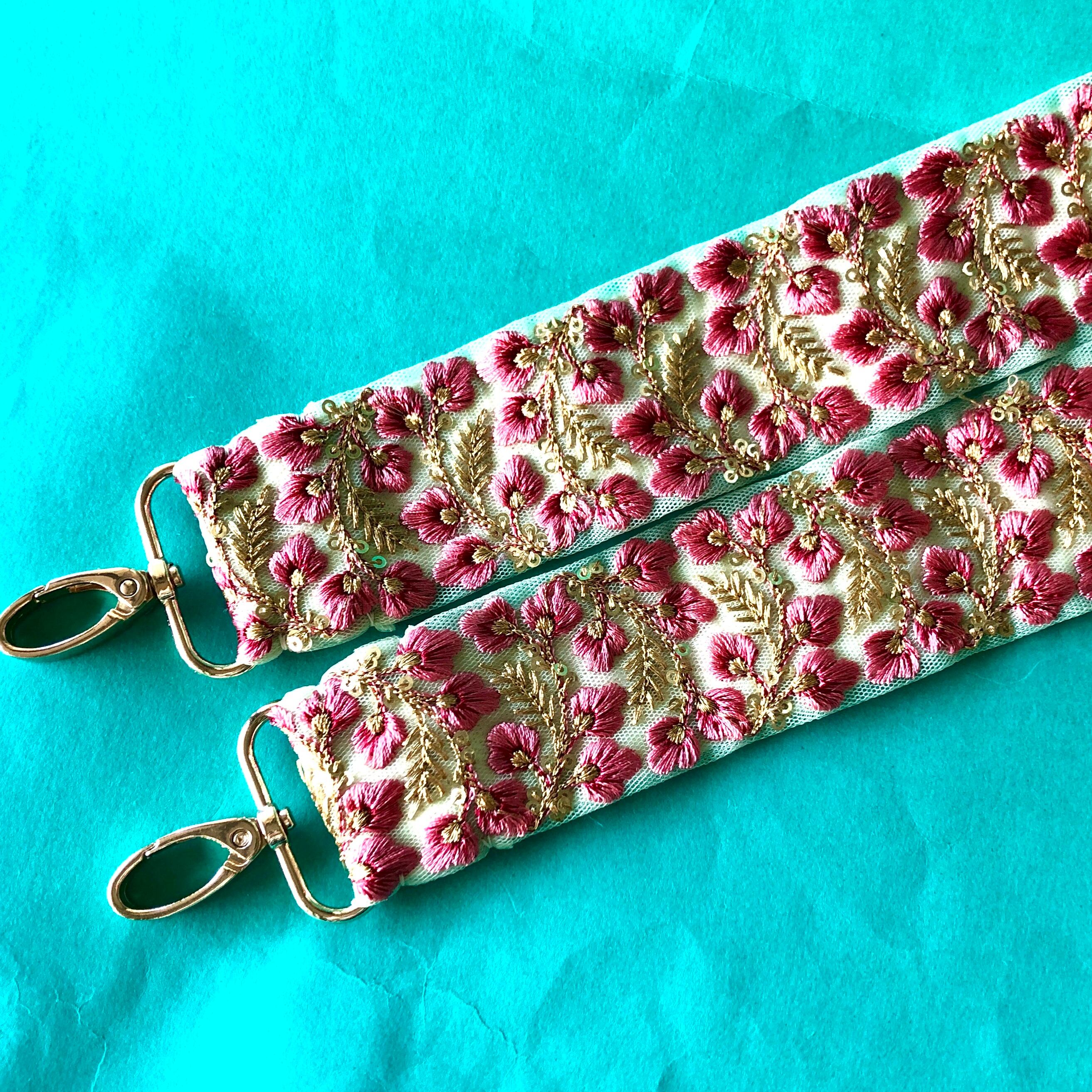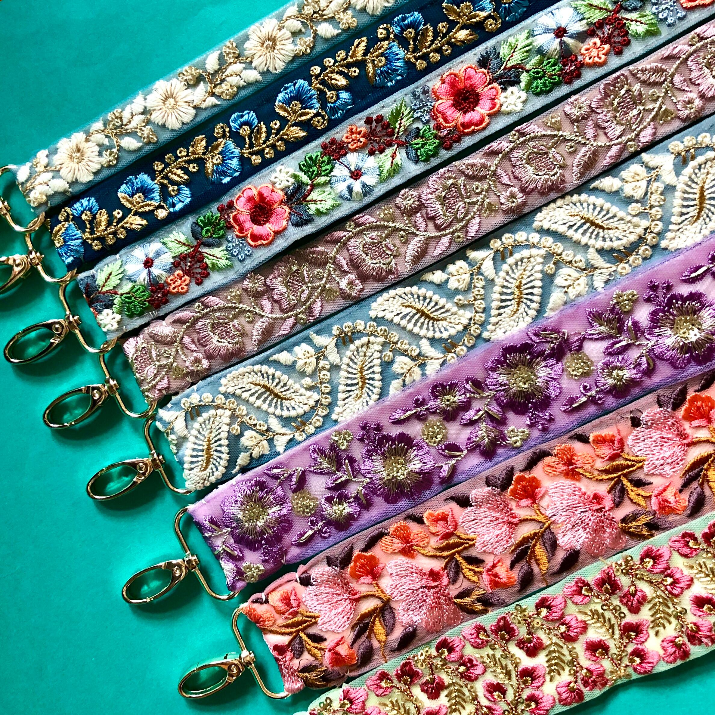 [約80cm] スマホストラップ ショルダーストラップ リボンストラップ インド刺繍リボン