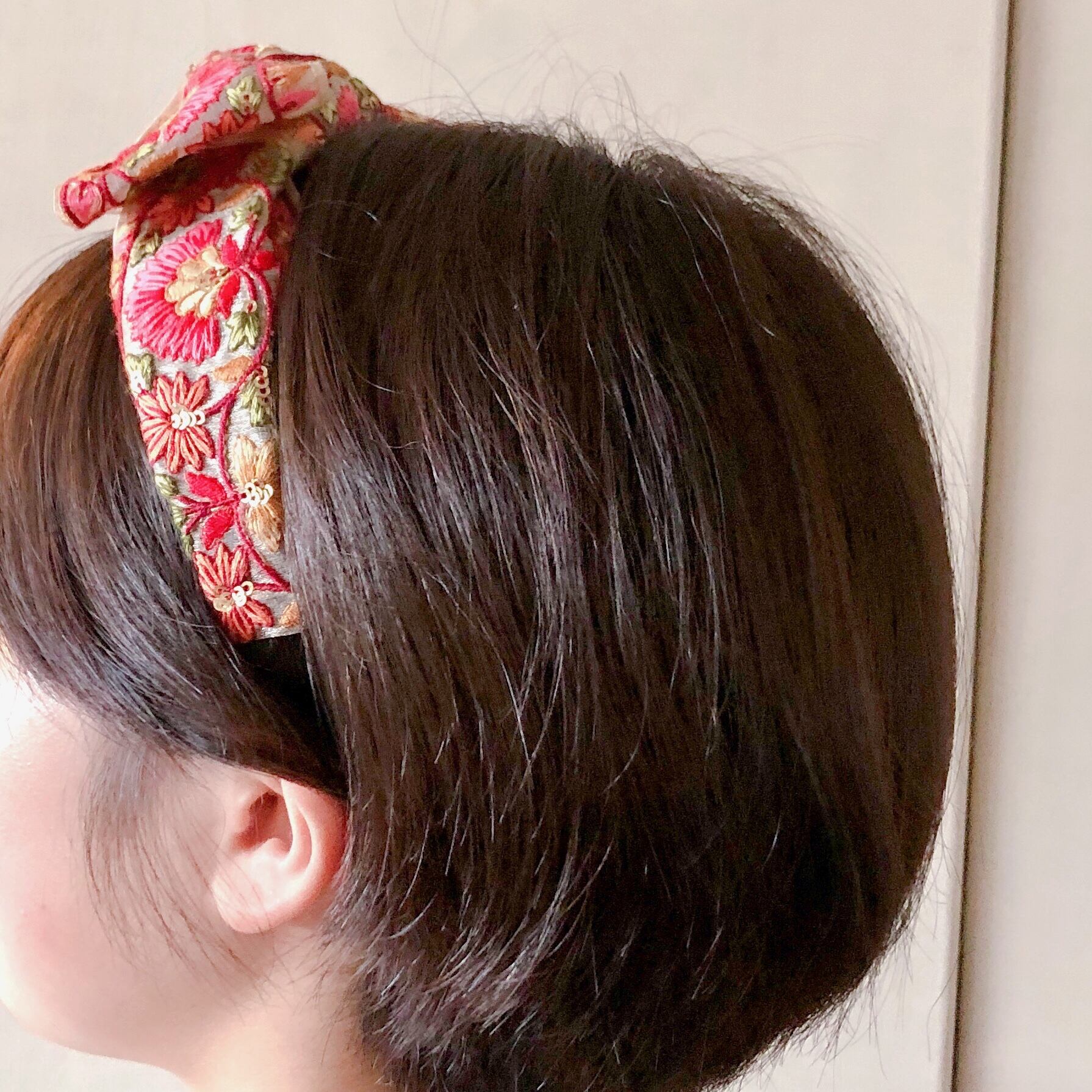 幅広のインド刺繍リボンをたっぷり使用したおリボンタイプのカチューシャです。