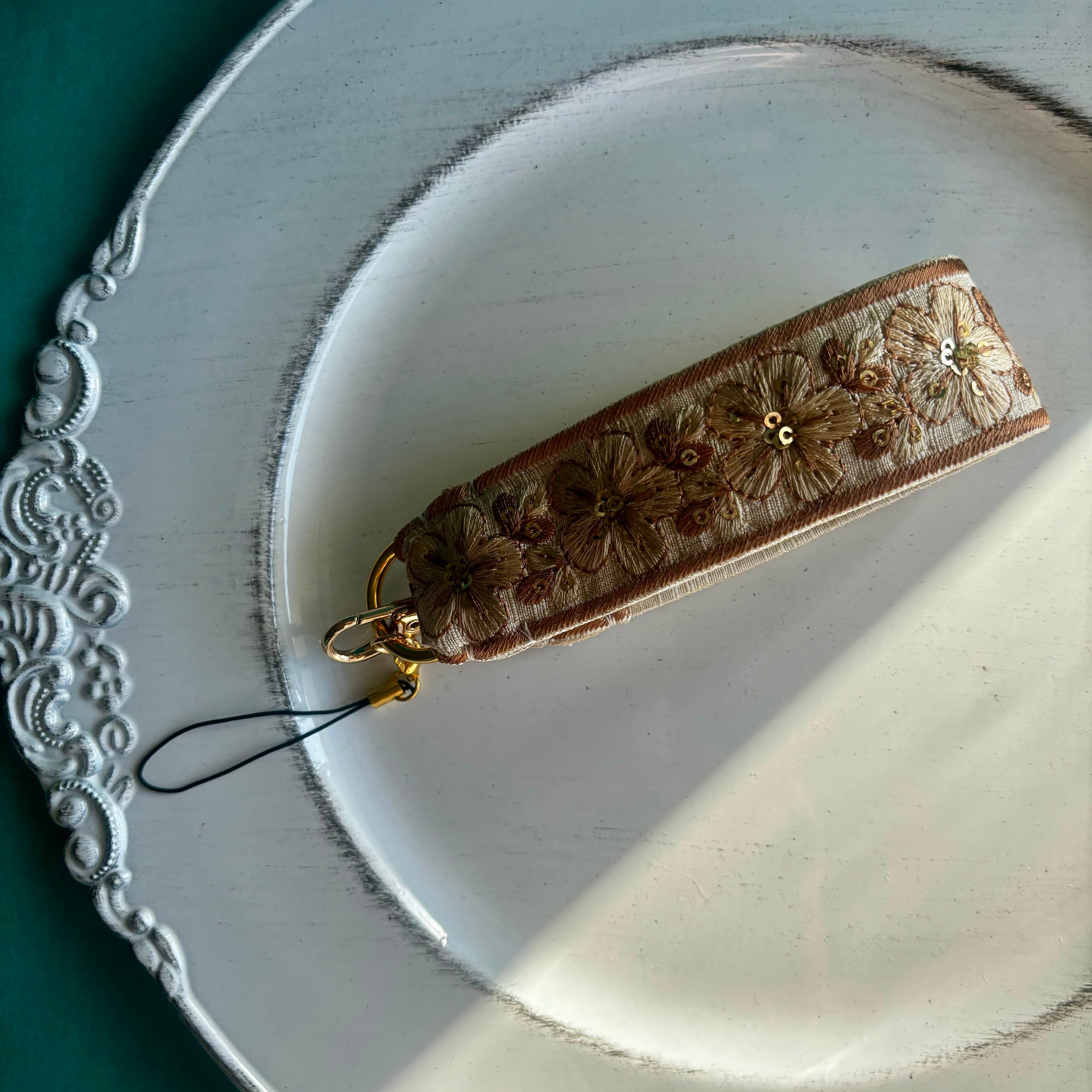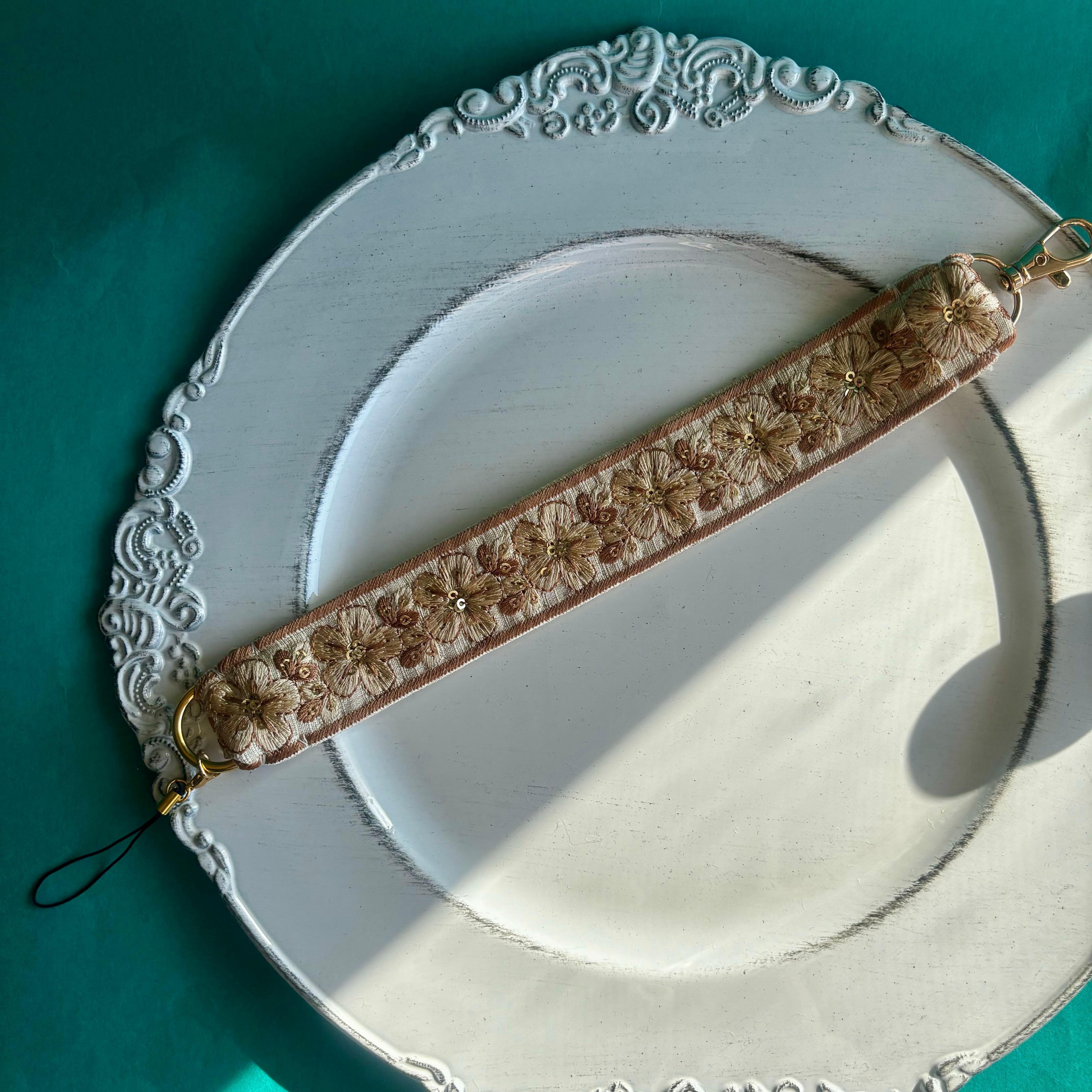 スマホハンドベルト/ショートストラップ 落下防止 インド刺繍リボン ハンドストラップ