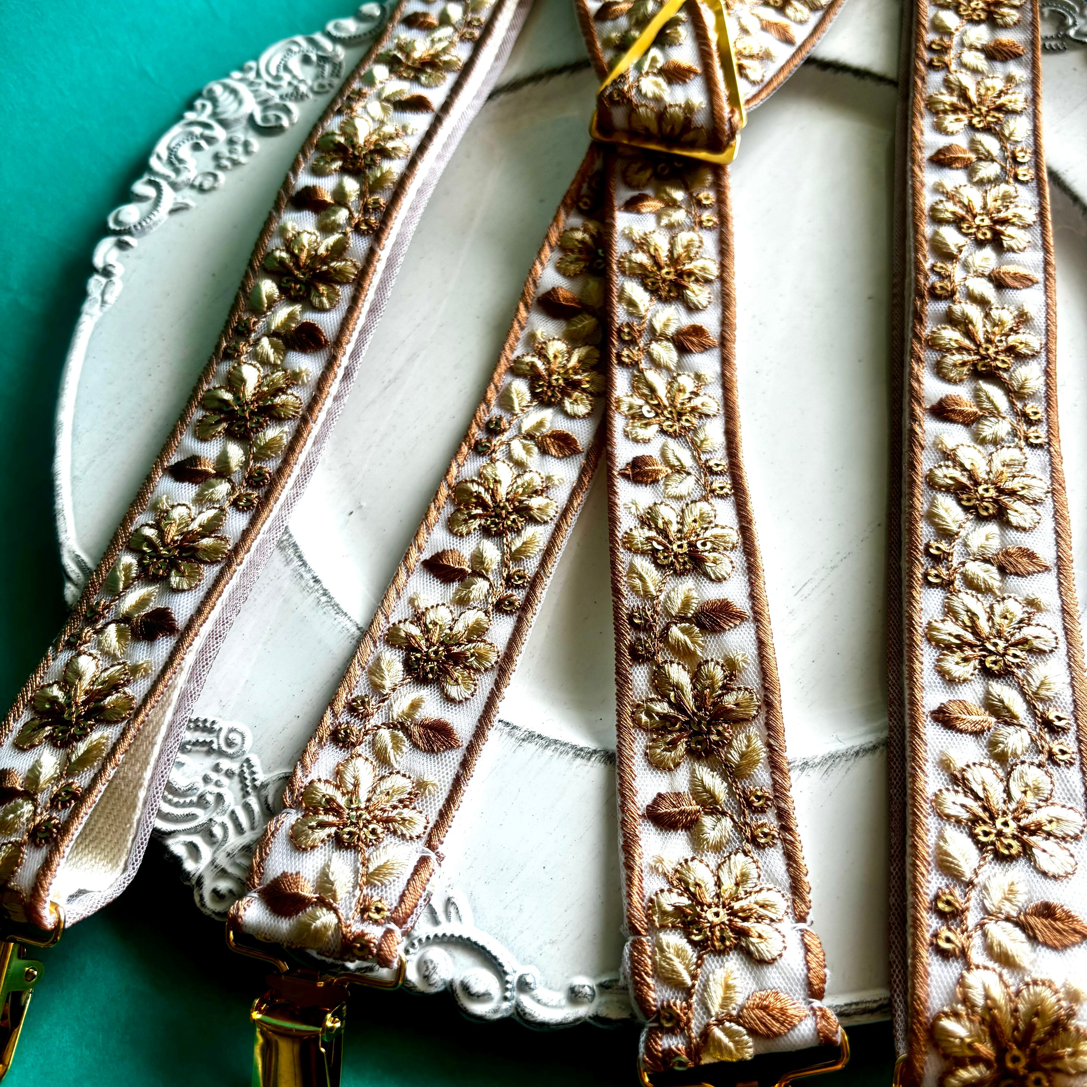インド刺繍リボンのサスペンダー、スカートやパンツに合わせて可愛くなります。