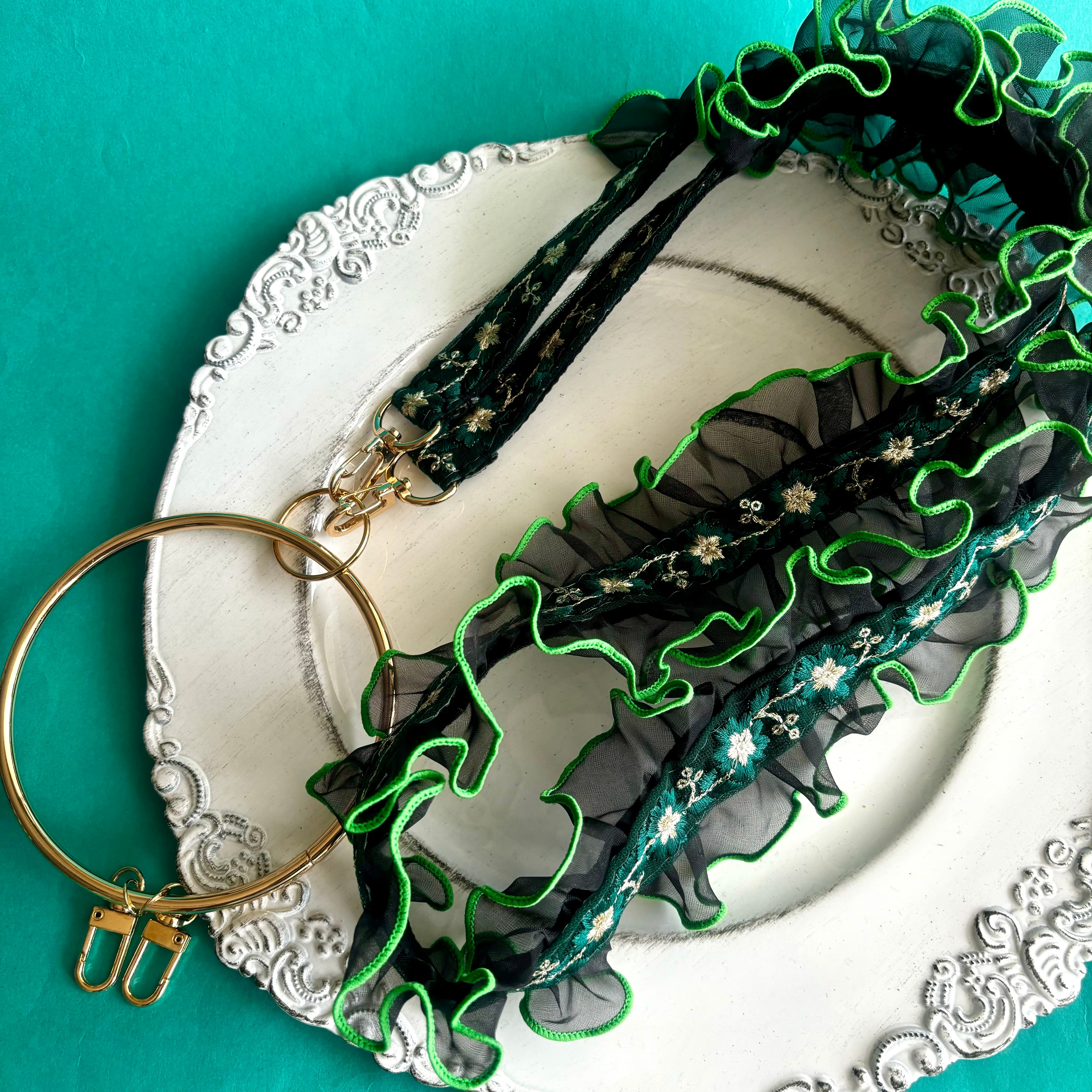 【120cm】インド刺繍リボン ストラップ スマホショルダー スマホストラップ インド刺繍 フリル フリルショルダー
